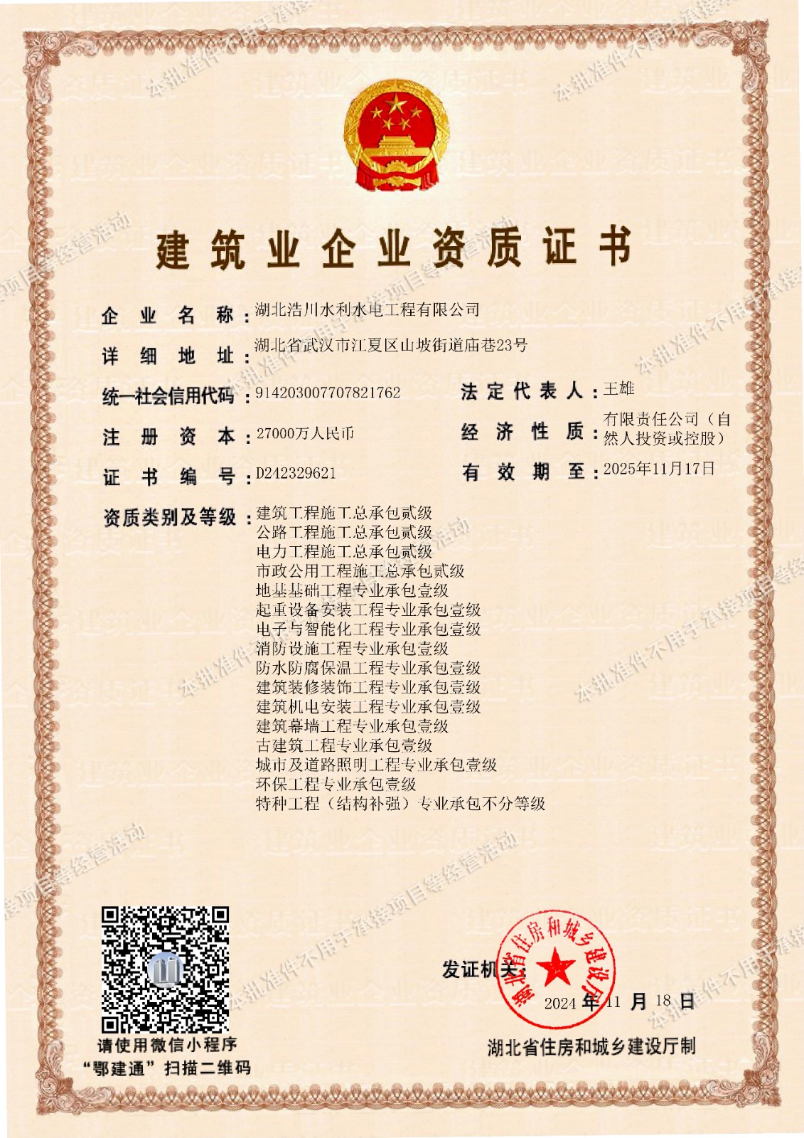 建筑业企业资质证书